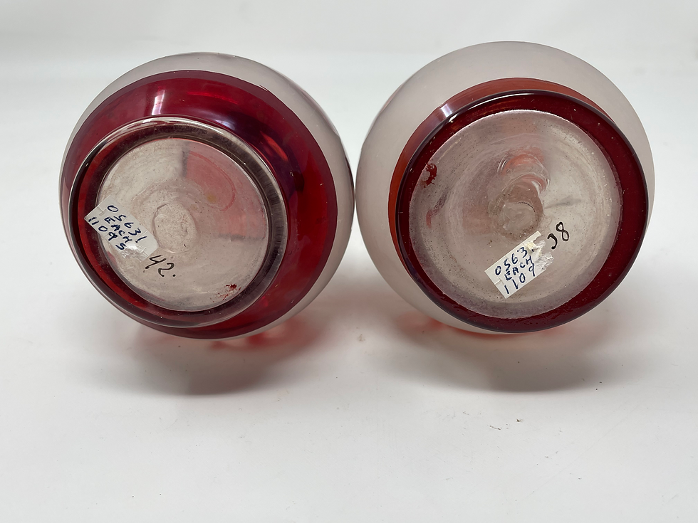 Pair of Vintage Red and Frosted Glass Vases